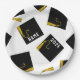 Creative graduation party plates featuring black and gold graduation caps. To personalise edit text to add name of grad and senior class year.