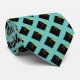 Creative graduation neck tie featuring black graduation cap and gold tassel design pattern on teal blue background for grad ceremony or party.