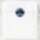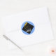 Classic graduation stickers for gifts and party favours featuring black cap with gold tassel on light-blue background. Edit text to add senior class year.