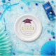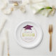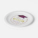 Elegant personalised graduation CLASS OF 2026 graduation party paper plates featuring faux metallic burgundy maroon and gold graduation cap and year with your custom text (shown with CONGRATULATIONS NAME) in maroon. ASSISTANCE: For help with design modification or personalisation, colour change, resizing, transferring the design to another product or if you would like coordinating items, contact the designer BEFORE ORDERING via the Zazzle Chat MESSAGE tab or email makeitaboutyoustore@gmail.com.