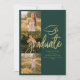 Graduation 4 Photo Collage Script Green and Gold Announcement for class of 2026. Easily customise this by changing the text and replacing the photos with yours. A modern and trendier way to announce your graduation this year!