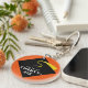 Creative graduation memento keychain keepsake gift featuring black graduation cap and gold tassel on orange background. To customise edit text to change senior class year.