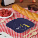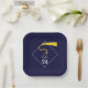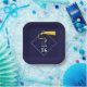 Creative graduation party or event plates for class of '26 grads featuring funny line and classic graduation cap with gold tassel on navy blue background.