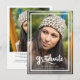 Celebrate the achievement of your academic journey with our Custom Script Typography Photo Graduation Announcement. This announcement is a perfect blend of elegance and personalisation, featuring a unique script typography that adds a touch of sophistication to your special moment. Featuring a full size photo on the front with white text overlay and a photo on the reverse side with optional details.