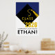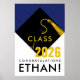 Creative graduation party decoration poster celebrating your favorite grad whose school color is blue. To personalize edit text to add name and senior class year.