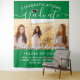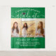 Add an elegant personalised touch to college or high school graduation party decorations with a large custom 3 photo collage backdrop. Pictures and all text are simple to personalise, and colours are easy to change with the Zazzle design tool. (IMAGE PLACEMENT TIP: An easy way to centre a photo exactly how you want is to crop it before uploading to the Zazzle website.) The green and and white design features trendy handwritten script calligraphy, chic modern minimalist typography, and three photos of your choice, such as senior pictures or images from the commencement ceremony. This large graduation party sign can be hung on a wall to welcome guests to the celebration or used as a fun and stylish photo booth backdrop. Congratulations to the graduate!