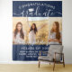 Add an elegant personalised touch to college or high school graduation party decorations with a large custom 3 photo collage backdrop. Pictures and all text are simple to personalise, and colours are easy to change with the Zazzle design tool. (IMAGE PLACEMENT TIP: An easy way to centre a photo exactly how you want is to crop it before uploading to the Zazzle website.) The navy blue and white design features trendy handwritten script calligraphy, chic modern minimalist typography, and three photos of your choice, such as senior pictures or images from the commencement ceremony. This large graduation party sign can be hung on a wall to welcome guests to the celebration or used as a fun and stylish photo booth backdrop. Congratulations to the graduate!