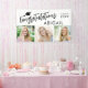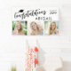 Graduation 3 Photos Congratulations Name Banner. Congratulate and celebrate your graduate with this modern banner sign personalised with three pictures, "Congratulations Name" and class year accented with a graduation cap in your choice of text, cap and background colours. Change colours in EDIT. BANNER OPTIONS: The sample is shown in the 3x5' indoor style--other sizes and "outdoor" are available on the ordering page as well as the option of transferring the design to a foam board, poster, tapestry or other product. NEED IT FAST? Request the designer send you the link to a downloadable digital file for printing locally. ASSISTANCE: For design assistance, contact the designer BEFORE ORDERING via the Zazzle Chat MESSAGE tab or email makeitaboutyoustore@gmail.com.