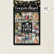 Create a custom colour graduation party photo memory display banner utilising this easy-to-upload photo collage template with 42 square pictures of your graduate through the years. The design features gold stars, editable modern script and decorative typography for your personalised title (shown with CONGRATS NAME and school name or other custom text) and CLASS OF YEAR GRADUATE in your choice of text, grad cap graphic and background colours to change to school colours or coordinating party theme colours (shown in black and white). BANNER OPTIONS: The sample is shown in the 3x5' indoor style--other sizes and "outdoor" are available on the ordering page. You can also transfer the design to a poster, tapestry backdrop or other products or have the designer convert it to a Downloadable file for local printing prior to personalising it. ASSISTANCE: For help with design modification or personalisation, colour change, resizing or transferring the design to another product or converting to a Download file, contact the designer BEFORE ORDERING via the Zazzle Chat MESSAGE tab below or email makeitaboutyoustore@gmail.com.