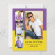 Modern, purple and yellow 4-photo collage graduation BUDGET announcement flat card. Personalise with your graduate's favourite photos and add their name, school, and graduation year. Use Zazzle's design tool to change the background colours to your own school colours.