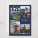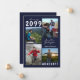 Editable navy blue and white graduation announcement with four photos and the graduate's name in a handwritten script font. The class year can be changed as well as the text font style, colour, size and placement. The back side has an optional text field to include additional information about the graduate (delete the sample text in that field if not desired).