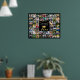 Create your own graduation photo memories display printed on foam core board utilising this easy-to-upload photo collage template with 54 square pictures of your graduate through the years to share at their graduation party. The editable black and gold design features a faux metallic gold graduation cap, the title CONGRATULATIONS NAME and class year. CHANGES: The text and background colours can be changed to a school colour or coordinating party theme colours in EDIT. OPTIONS: The sample is shown in a 28x22" size on Value Paper (Matte); other standard and custom print sizes and paper quality, Instant Digital Download file for printing locally or transferring the design to a foam board, banner, canvas or other product options are available on the ordering page. RESIZING TIP: Choose Custom Size for even borders by changing the height and width proportionately AFTER clicking the UNLOCK icon (looks like a chain link). ASSISTANCE: For help with design modification or personalisation, colour change, resizing or transferring the design, contact the designer BEFORE ORDERING via the Zazzle Chat MESSAGE tab or email makeitaboutyoustore@gmail.com.