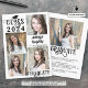 Announce your graduate's achievement with this modern photo graduation announcement featuring 5 pictures (4 on the front and 1 on the back) and stylish typography for the CLASS OF YEAR (the year is editable) and hand-lettered brushed script typography for your graduate's name. CHANGES: All text font styles, colors, size and placement as well as the graduation cap graphic and background colors can be changed to school colors or coordinating colors to your images (shown in black on white). The back side has an optional custom text field to include additional information about the graduate (delete the sample text in that field if not desired). ASSISTANCE: For help with design modification or personalization, color change, resizing or transferring the design to another product, contact the designer BEFORE ORDERING via the Zazzle Chat MESSAGE tab below or email makeitaboutyoustore@gmail.com.