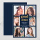 Graduation 6 Photo Collage Gold White Script Blue Announcement