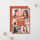 Send your family and friends a modern personalised photo collage graduation card to wow them. This modern template design features six photos for you to change to your own framed in burnt orange. In the centre in white typography is the word "Grad" with the year, your name and school to personalise. The back of the card is orange. Designed by Susan Coffey.
