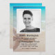 Beach themed graduation announcement. Starfish and blue ocean design with a place for his or her photo. Include all school information and party invitation.