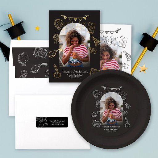 Graduation Arch Photo Hand Drawn Gold Announcement