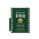 Announce your graduation and invite your guests in style with this BBQ themed postcard Grad party invitation. This modern design template features a white typography on green accented by an illustration of a cheese burger with the works. On the sides is a green and white striped border. The back of the postcard has your graduation details accented by a white graduation cap. Congrats on your graduation! Designed by artist Susan Coffey.