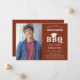 Announce your 2025 graduation and invite your party guests in style with this custom photo BBQ themed postcard. This modern design template features a white typography on orange accented by an illustration of a white graduation cap. Personalise with your graduation details and party invitation. Congrats on your graduation! Designed by artist Susan Coffey.