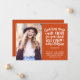Announce your high school graduation to your family and friends in style with this modern Christian photo announcement card.This design template features your photo on the left and on the right is a bible verse in a modern white script typography that reads "God has more in store for you than you can even imagine. Ephesians 3:20" with your class/year, name, school name, and date for you to personalise on a orange background. Back of the card is orange. Congrats on your graduation! Designed by artist Susan Coffey.