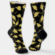 A black and gold gradaution socks for a graduation party for him or her. Gold graduation caps and mortarboards tossed in the air on a black background. Fun graduation socks for high school or college graduations with school colours of black and gold.