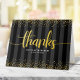 Make sure your favourite grad shows her appreciation to all who supported her milestone event! Send out this stunning, modern, sparkly gold typography script against a black and dark grey striped background with gold dots, custom thank you note. On the front, personalise with your grad’s name and class year. Add a personalised note on the inside. Guaranteed to add a stylish touch to her correspondence! Matching invites, return address labels, paper plates, napkins and other graduation goodies are also available in this trendy and special collection.