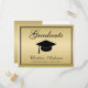 Send your family and friends this elegant graduation party invitation postcard. This design features a black graduation cap, with, "Graduate" written in script typography above and your name, school and year details below all on a faux gold background. The back of the postcard has your invitation details in black on faux silver. Designed just for you by artist ©Susan Coffey.