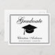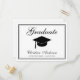 Graduation Black Grad Cap & Script on White Party Invitation Postcard