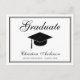 Send your family and friends this elegant graduation party invitation postcard. This design features a black graduation cap, with, "Graduate" written in script typography above and your name, school and year details below all on a white background. The back of the postcard has your invitation details in black on white. Designed just for you by artist ©Susan Coffey.