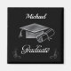 Metallic looking image of a graduation cap and diploma, with script font offer a trendy congratulations gift, souvenir, giveaway or party essential for any graduation.