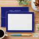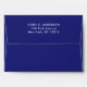 Creative graduation envelope featuring cap design in black and gold on royal blue background. Edit text to add name of grad and return address.