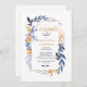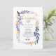 A handsome graduation invitation, in white, with a thin gold frame that features gold and blue foliage. (<a href='https://www.freepik.com/free-vector/floral-wedding-invitation-with-menu-template_3372690.htm'>Designed by BiZkettE1</a>). <br/><br/>The card is easy to customise with your wording, font, font colour, paper shape options and choice of six paper types.<br/><br/>Not exactly what you're looking for? All our products can be custom designed to meet your needs at no extra charge.<br/><br/>Simply contact us at heartfelthelper@gmail.com.<br/><br/>Coordinating products available: Just ask us!