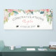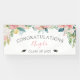 Congratulate your graduate with a personalised banner sign and welcome party guests. Blush pink floral border and rose gold handwritten script name.