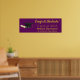 A congrats graduate poster / banner with a chic design illustrated with a graduation cap and diploma. Text says: Class of 2018 (you can customise the year) and the graduate's name and school. Set on a pretty purple background with gold coloured lettering. Simple, modern and elegant.