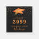 Graduation Cap Black Orange Confetti Script Napkin