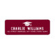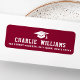 Burgundy or custom colour graduation return address labels featuring a graduation cap with your name below in a college sports style font. White or custom colour text on a burgundy or custom colour background.