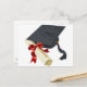 Black graduation diploma hat and diploma parchment rolled up and secured with a red crimson coloured ribbon