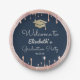 Graduation Cap Glitter Rose Gold Drips Navy Blue Paper Plate