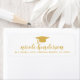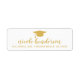 Modern graduation return address labels featuring a grad cap along with the grad's name in an elegant handwriting font in a gold tone over a white background. These simple and pretty return address labels are perfect for a girl graduate.
