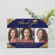 Graduation Cap Gold Foil On Blue Thank You Invitation