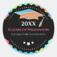 Fun and modern graduation envelope seal for your invites, save the dates, announcements and thank you cards. Holographic looking graduation cap and background. Modern logo style design with your graduates name, school and year of graduation.