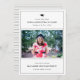 Clean, minimalist black and white makes this a simple and modern graduation announcement. This card features a small cap illustration and six lines of custom text to note your graduate's high school or undergraduate school, their full name, class year, and their continued plans for further education including a bachelor's or advanced degree. The backer pattern of simple stripes can easily be edited in colour or removed to add any additional text.