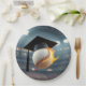 A baseball wearing a graduation cap is surrounded by flames, symbolising a blend of education and sports intensity.