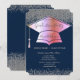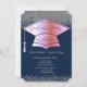 Graduation Cap,Silver Diamonds Navy Blue Invitation