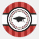 Graduation Caps Stripes Party Favour Sticker (Maroon Red/ Dark Burgandy / White / Black)...This classic Graduation sticker is the perfect addition to the graduation party invitations inviting friends and family to a graduation party. It's also a great party favour sticker. Use it on goodie favour bags. Put them on toothpicks and put them in graduation cupcakes. Whether you're celebrating a Kindergarten (Kindergarden) Graduation, High School Graduation, Law School (JD) Graduation, Med (Medical / MD) School Graduation, Business School Graduation (MBA), Nursing School (RN) Graduation, Dental School (DDS) Graduation, College Graduation, Pharmacy School Graduation, Veterinary (Veterinarian) School Graduation, or Grad School Graduation (PhD / Masters Degree), this sticker is perfect to mark the occasion. The little graduation cap is too cute. See WindyCityStationery.com for our complete line of "Graduation Cap Stripes" postage stamps and matching "Stripes" invitations and announcements as well as our lines of invitations, save the dates, postage stamps, note cards, and more for every occasion.