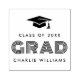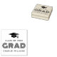 Graduation rubber stamp featuring a graduate cap and the graduate's name and year above and below the text "grad" in a fun, modern font.