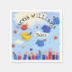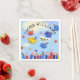 For a graduation party, these napkins are decorated with a scene of tossing colourful graduation caps into the air, shown against a blue sky with puffy clouds along with a name and year for you to personalise.