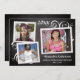 Add three digital photos to this chalkboard blackboard style graduation announcement with a slate grey/black background with white chalkboard text and decorative elements on front and back.