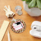 A graduation clas of 2011 keychain featuring a background of giraffe print. Text inside pink frame reads "Class of 2011" and features a graduation cap illustration to the right. Look for matching invitations and more at Jill's Paperie.