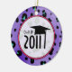 A graduation ornament featuring a purple leopard print background. Design inside sheer circle outlined in pink reads "Class of 2011" and features a graduation cap.